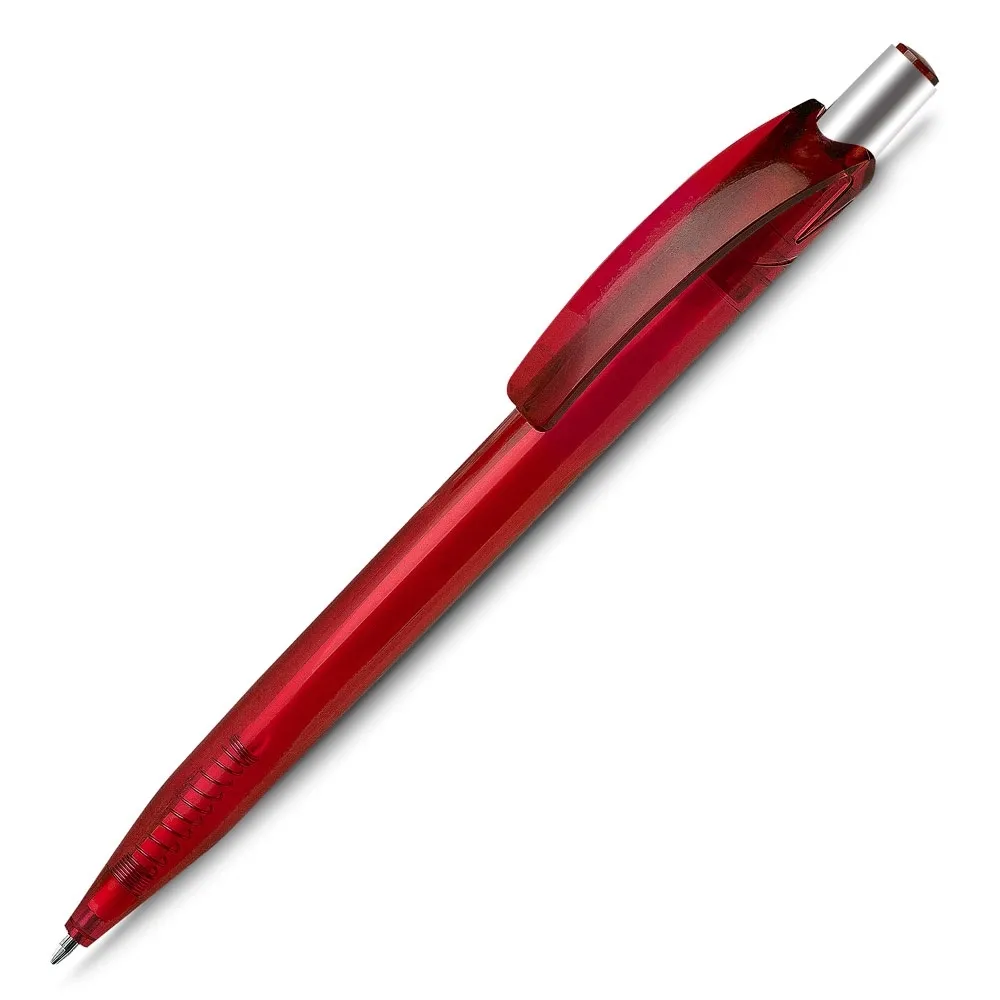 Caneta plástica com carga esferográfica azul 1.0mm e acionamento por clique.