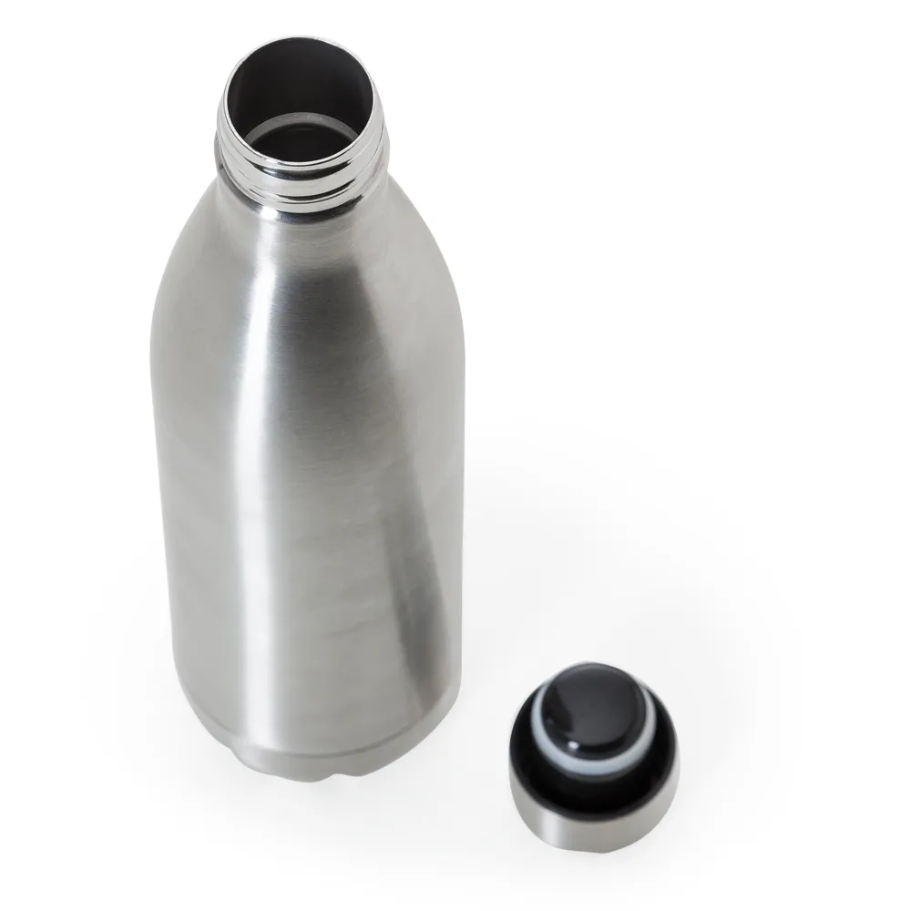 Garrafa térmica 750ml em inox de alta qualidade. Possui tampa, pode ser utilizada com líquidos quentes ou frios.